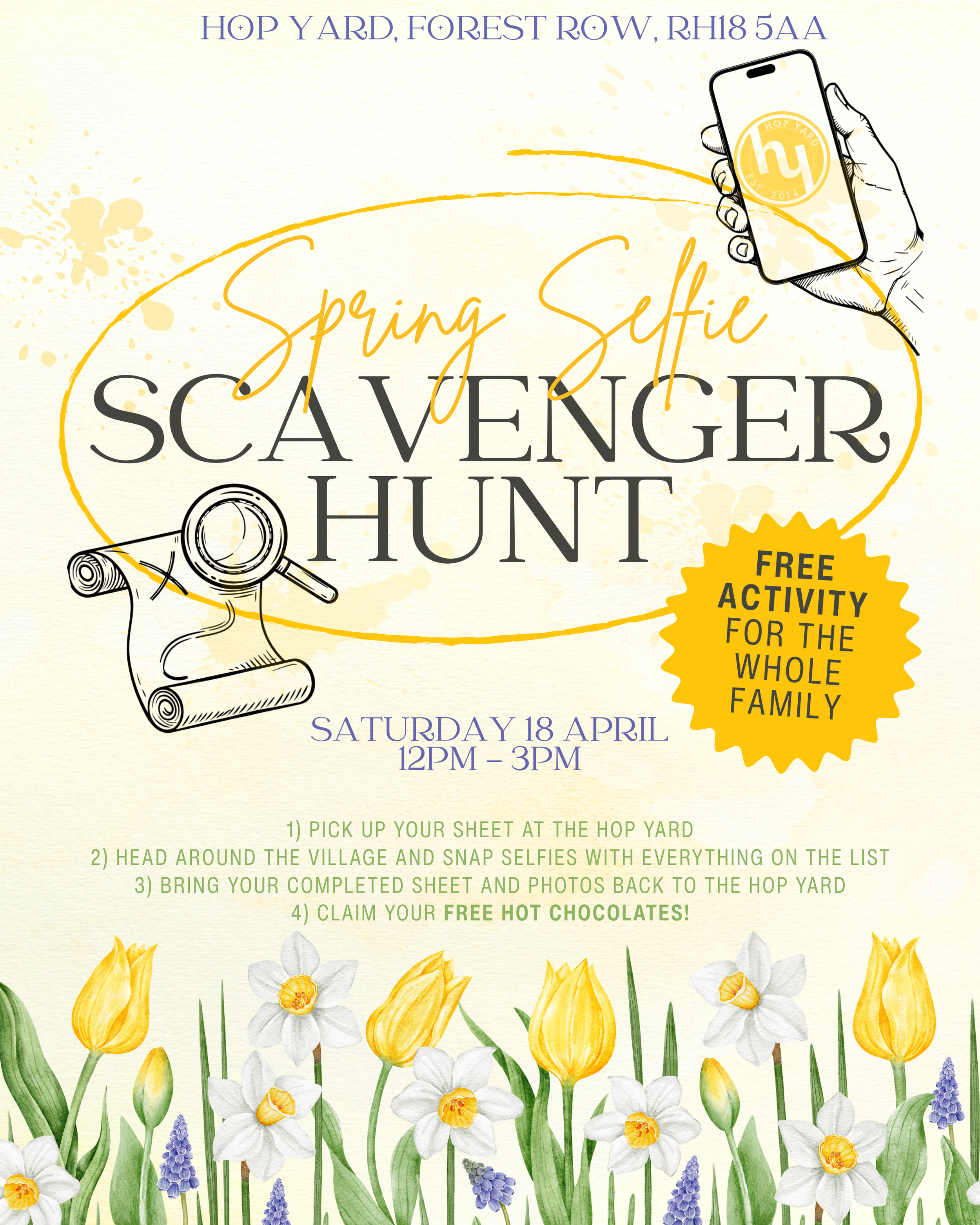 Start by picking your scavenger sheet at the Hop Yard and then head out around the village and take selfies with everything on the list. Once you’ve ticked off everything on the list, bring your completed sheet back to Hop Yard and claim your free hot chocolate!